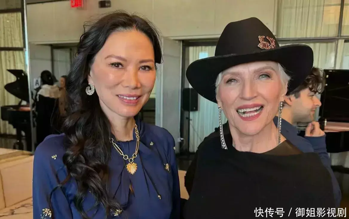 她烫了相沿鬈发,化了良好妆容,戴了祖母绿的耳饰,有上个世纪民国女星的范儿。邓文迪脸上莫得皱纹,笑貌满面,充满了人命力,终年健身,让她看起来身姿唯妙。